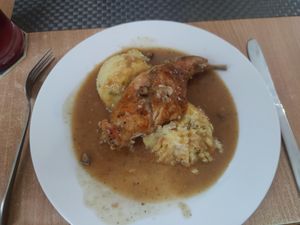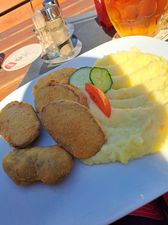 The food is probably okay. I chose this restaurant from three options. Two are on náměstí, this one is about 300 meters from náměstí. It’s a big advantage that I could sit outside and keep my bike in sight. I was missing bike stands near the garden. I had bull's glands, mashed potatoes. A little more mashed potatoes wouldn’t hurt 😉. I noticed that quite a few people turned over there. Which proves they don’t cook that badly here. For me, it's okay but not 5 stars. Maybe next time.